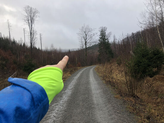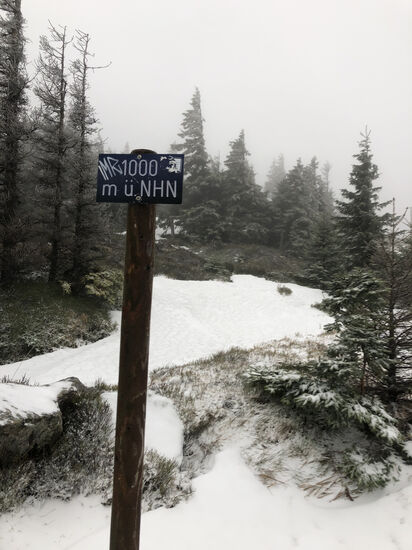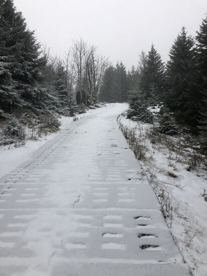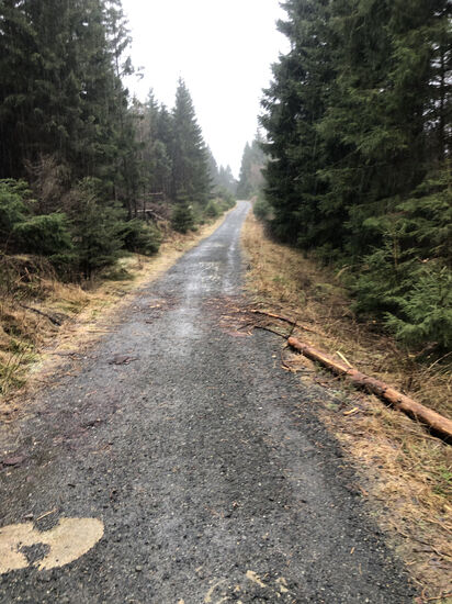 OK, ab jetzt ging es ins Eingemachte. Die Rahmenbedingungen für mein Finale dieser Tour waren ideal. Es bahnte sich ein Abenteuer an. Meine Kraftreserven waren sehr übersichtlich, die Steigung auf diesem alten DDR Versorgungsweg war mächtig und das Wetter spielte mal so richtig mit und legte sich über 1.000 müNN so richtig ins Zeug. Regen ging in Schnee über und der Wind hatte orkanstärke erreicht.