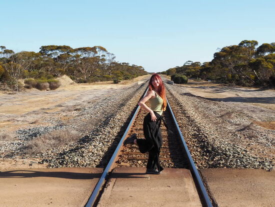 Die Reise führt uns weiter Richtung Norseman. Die Landschaft ändert sich und der Strassenverlauf wir immer gerader. Auf und ab aber fast schnurgerade. Neben der Strasse verlaufen die Gleise der Eisenbahn. Ich frage mich, ob hier tatsächlich mal ein Zug fährt. Ich entschliesse mich, einen Fotostopp an einer der Geraden einzulegen. Harry folgt mir und wir machen noch ein paar Portraits.