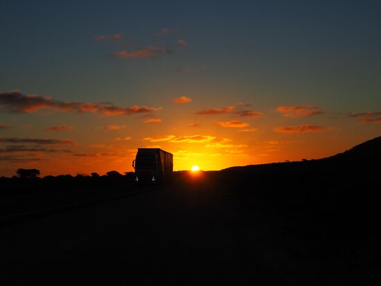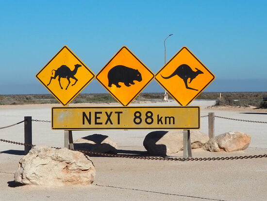 Hätten wir wohl besser da schon entschieden, dass wir nicht weiterfahren. Denn als wir in Yalata ankamen, war alles zu, verriegelt, kein Hinweis oder eine Telefonnummer, die man anrufen kann. Komisch, auf dem Platz hatte es noch einen anderen Wohnwagen. Eigntlich steht in meiner App, dass bis 19 Uhr offen ist und wir stehen hier um 18 Uhr und es herrscht schon totenstille. Nun denn, was bleibt uns anderes übrig, entweder zurückzufahren oder noch weiter. Just als wir los wollten, klingelte mein Telefon. Yves hatte zwar eine weniger schöne Nachricht aber trotzdem war es schön ihn kurz zu hören und auch zu wissen, dass es meiner kleinen Nichte die unterwegs ist gut geht. Nun also, weiter im Tex oder auf der Strasse, den Sonnenuntergang haben wir soeben verpasst, da wir etwas weiter unten als zuvor sind. Die nächste Station ist ein Roadhouse in Nundroo. Alles schon fast dunkel, die Tür ist jedoch offen und es befinden sich noch zwei Personen im Shop. Harry geht hinein, eigtlich wollen wir ja nur wissen, ob wir duschen können und gut wäre es auch noch zu tanken. Erst wurde er nicht gesehen, dann haben wir versucht zu tanken, dann geht normalerweise im Shop der "Alarm" damit die Säule freigeschaltet werden kann. Nun, Harry geht nochmals in den Shop und wurde dann darauf hingewiesen, dass geschlossen sein. Allerdings hatte es keine Öffnungszeiten an der Tür und sie war ja eben offen. Als Harry raus kam, wurde hinter ihm abgeschlossen. Ok, keine Dusche, kein Bezin. Da wir aber ja meist schon recht früh wieder tanken, reicht es auch noch bis zum nachsten Caravanpark in weiteren 80 km. Es wird schon wider dunkel und ich fungiere als Tier-Warnung auf dem Beifahrersitz. Zum Glück hatten wir bisher alle Tiere frühzeitig gesehen, so dass sie und wir unbeschadet blieben. Aber ich fahre nicht gerne in der Nacht, es wird ja auch davon abgeraten. Nun haben wir aber keine wahl, tanken müssen wir auch und da wir uns in einem Aboriginal-Gebiet befinden, gibt es auch keine Rastplätze an den wir übernachten könnten. Nächste Station ist also Penong. Um 21.00 Uhr fahren wir vor und sehen, dass die Büroöffnungszeiten bis 21.00 Uhr sind. Ok, wir entschliessen uns also zu klingeln. Es dauert eine Weile und dann kommt ein verschlafener, aber freundlicher, Herr zur Türe und wir konnten tatsächlich noch einchecken. Ich war schon erstaunt, dass er schon geschlaten hat, wenn das Office bis neun auf ist aber grundätzlich bin ich einfach froh ein WC und dann morgen früh eine Dusche zu haben. Heute fallen wir stinkend ins Bett.