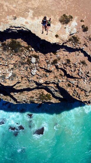 Wir beschliessen aber weiterzufahren und haben uns einen Caravanpark herausgesucht in Yatala. Die Strasse führt uns weiter durch den Nullarbor und ist tatsächlich ebenso beeindruckend in seiner Bescheidenheit. Keine Bäume, nur ganz kleine Büschlein und so was ähnliches wie Gras. Wir versuchen unser Glück und wollen ein Sinkhole finden. Die Strasse die vom Highway wegführt fanden wir, doch dann sah es eher aus, als führe diese ins Nirgendwo. Harrys Theorie war, dass doch niemand eine Strasse oder einen Pfad trammpelt, wenn es am Ende nichts zu sehen gäbe. Gesagt getan, wir fahren also vorsichtig ca 2 Km auf diesem Weg und landen tatsächlich bei einem doch recht grossen Sinkhole. Schön ist es hier auch und wir fliegen noch eine Runde mit der Drohne, ins Loch hinabsteigen kann man ohne Kletterausrüstung nämlich nicht.