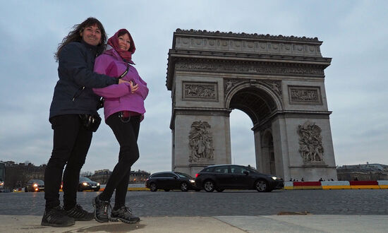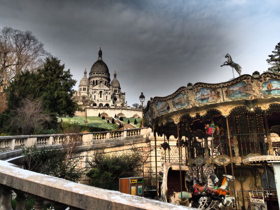 Nach dem Tour d'Eiffel machten wir uns auf in Richtung Montmartre, ich möchte Harry noch Sacre Coeur zeigen. Ein paar Fotostops, an Souvenierläden vorbei die einem Schals und Handschuhe verkaufen möchten, kamen wir kurz in Versuchung. Es lohnt sich nicht, wir werden sie hoffentlich danach mindestens 6 Monate nicht mehr benötigen aber dafür rumtragen. Nein. Die Hände tief in die Taschen vergraben, stiegen wir die Treppen empor und wurden mit einer grandiosen Sicht und ein paar Sonnenstrahlen belohnt. Nachmittags um drei war der Spuck aber dann auch schon vorbei und es wurde dunkler und entsprechend wieder kälter. Ich schlug vor, einen Kaffee zu trinken. Gesagt getan, wurde der Kaffee noch mit einem Crepe ergänzt. Nach Montmartre reichte es noch für den Arc de Triomphe und dann mussten wir auch schon wieder Richtung Flughafen weiter. Im Hotel haben wir noch die Rucksäcke abgeholt und standen dann an der U-Bahnstation. Schon die vorige Bahn war wegen einer Pannenbahn nur sehr langssam unterwegs und hielt zu allem Überfluss auch nicht an allen Stationen wegen Bauarbeiten. Ok, eingecheckt hatten wir ja schon aber das Gepäck musste noch pünktlich abgegeben werden. Es folgte eine eigene Geschichte.