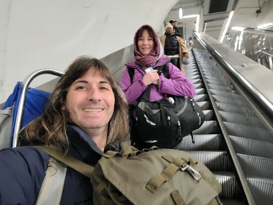 Der Flughafenzug fuhr ein und war schon brechend voll. Einen weiteren konnten wir nicht abwarten, wir mussten da mit unserem Rucksäcken irgendwie rein. Zum Glück hatten andere ebenso die Idee und wir wurden mehr oder weniger geschoben. So fühlt sich eine Sardine. Ich versuchte mein Handgepäck nicht aus den Armen zu verlieren während ich dafür Harry nicht mehr sah. Ein kurzer Stimmenchek und ich war mir wenigsten sicher, dass er auch im Zug drin ist. Gut soweit. Paris hat ja nicht nur Annehmlichkeiten zu bieten. Taschendiebe sind äusserst aktiv. Das musste auch Harry noch erfahren. An der nächsten Station ging das Gedränge weiter und der Zug füllte sich weiter - ich weiss nicht wie. Ich versuchte einen standfesteren Platz zu ergattern. Nun denn, eine Personengruppe, die offensichtlich nicht an den Flughafen wollte, versuchte sich an Harrys Bauchtäschli zu schaffen zu machen. Irgendwie bemerkte dies Harry und schloss den bereits geöffneten Reisverschluss nach einer kurzen Kontrolle wieder und hielt es zusätzlich fest. Auch ich konnte viele Hände spüren, meine Tasche war jedoch unter meinem Pulli, in der Jacke und unter dem Gurt des grossen Rucksacks. Uff zum Glück, kurz an der Katastropghe vorbei, schon am ersten Tag. Das wäre ja der Supergau gewesen, alle Karten, Pass und Handy weg, bevor unsere Reise richtig los ging. Wir entschieden, Paris bei sommerlicheren Temperaturen ist sicherlich nochmals eine Reise wert aber für heute bin ich froh, wenn wir es zum Flughafen schaffen.