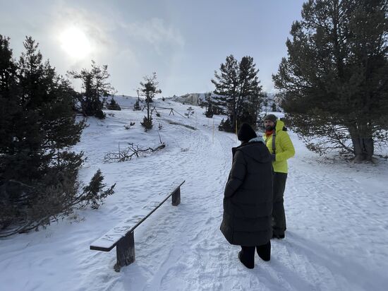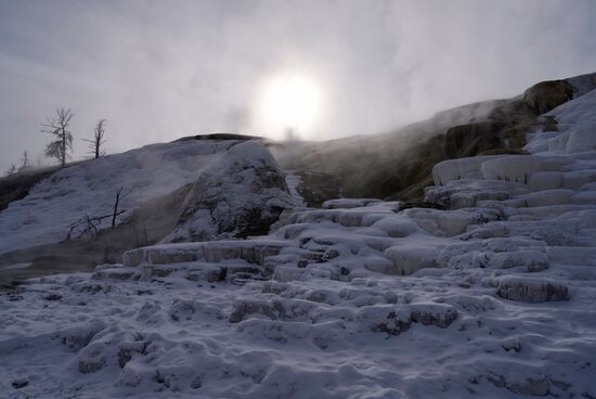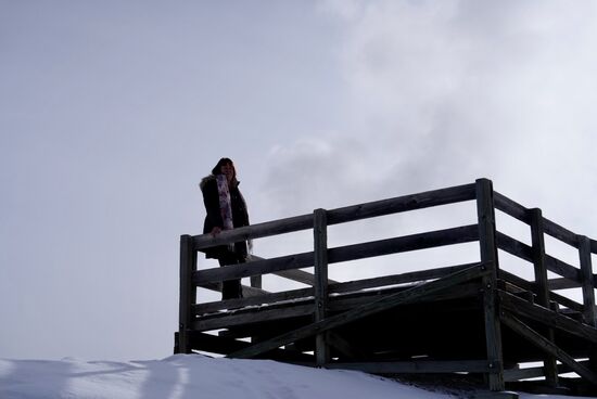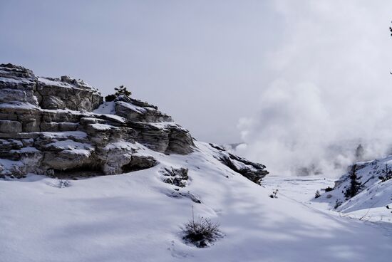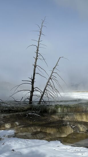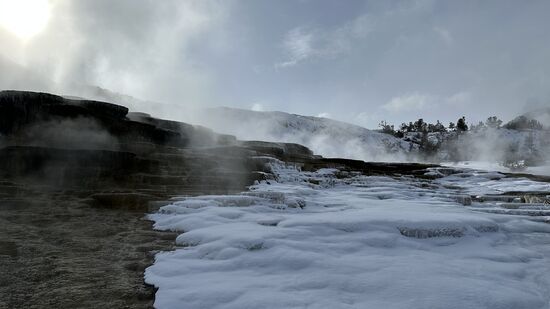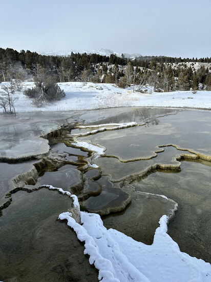 Wir machen einen ausgiebigen Rundgang über die Stege. Diese sollte man nicht verlassen, da sich unter den Schnee-und Eisschichten die heißen Quellen verbergen. Tatsächlich kommen so jährlich einige Menschen durch Verbrühungen ums Leben
