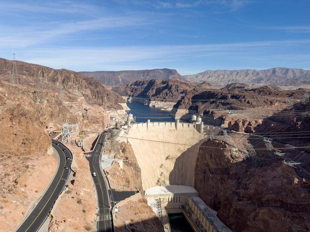 Von der Brücke haben wir den tollen Blick auf den Staudamm, der nach dem 31. Präsidenten Herbert Hoover benannt wurde