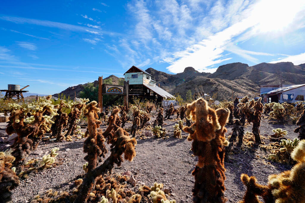 Beim näheren Heranfahren erblickt man eine Mischung aus Schrottplatz, Sammlung von Kuriositäten und Gerümpel und wohl etwas verrückte Amerikaner, die ein Händchen fürs Geschäft haben....