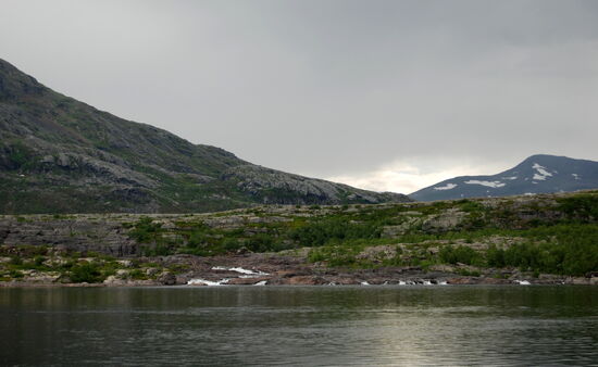 Als es anfing zu regnen, setzten wir uns innen hinter die Scheiben. Es dauerte nicht lange, als eine Gruppe mit der Führung neben unserem Tisch Halt machte. Die Erklärungen waren sehr interessant: Der Wasserfall war Anfang der 1900er Jahre touristisch sehr beliebt. Man nannte ihn auch die schwedischen Niagarafälle. 1909 wurde Stora Sjöfallet Nationalpark. Schon 1919 wurden die Wasserflächen aus dem Nationalparksgebiet herausgenommen, da Staudämme für die Stromgewinnung gebaut werden sollten. So sind jetzt nur noch Reste von diesen wunderbaren Wasserfällen vorhanden.