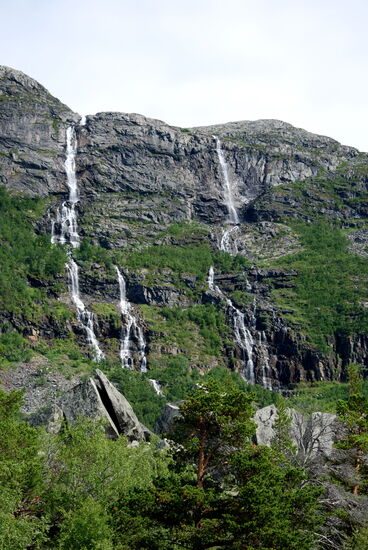Wir fuhren ca. 50 km am aufgestauten Luleälven entlang. Kurz vor dem Staudamm sahen wir zwei Wasserfälle den Fels hinunter fallen, die Zwillingsfälle.