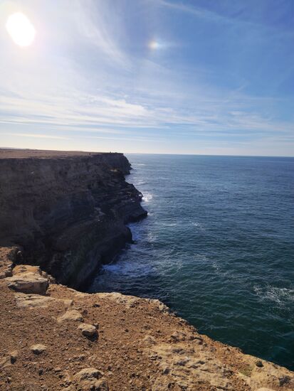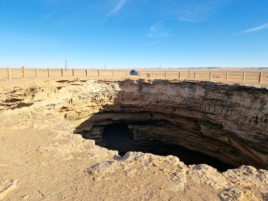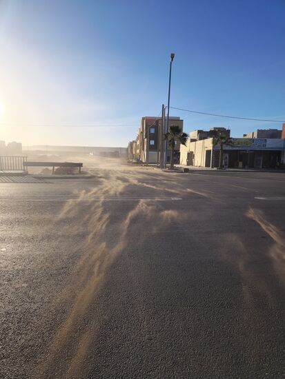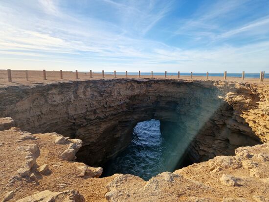 Weiter ging es nach Tan-Tan, wo wir uns nochmals mit Vorräten eingedeckt haben, um direkt weiterzufahren nach Akhfennir. Das einzig Sehenswerte an dem Ort ist das bekannte Straßenschild mit den enormen Distanzen, welches sich ca. bei GPS 28.43943552166401, -11.10503019808981 befindet. Auf dem Weg nach Akhfennir befindet sich entlang der alten Nationalstraße 1, welche parallel zur neu planierten, vierspurigen Autobahn verläuft, noch ein eindrucksvoller Lookout an einer ausgehöhlten Klippe, der einen Stopp wert ist (N 28.107026°, W 12.037770°). Entlang der Strecke gibt es außerdem immer wieder schöne Fotomotive an der Steilküste, die nur wenige Meter entfernt ist. Es führen immer wieder Fahrspuren von der Teerstraße weg. Ein paar Kilometer weiter liegt auch schon Akhfennir, wo wir die Nacht freistehend auf einem Schotterplatz hinter der örtlichen Polizeistation in Gesellschaft einiger Wohnmobile verbracht haben (N 28.097091°, W 12.049500°). Der Platz ist sicher, aber aufgrund des Gebells der vielen Straßenhunde mit einem Dachzelt des Nachts eher ungeeignet. Wir würden es nächstes Mal an der Lagune Naila im Nationalpark versuchen, hier befindet sich lt. Karte auch eine Übernachtungsmöglichkeit (N 28.028585°, W 12.240115°) und es sind nur ca. 30 Kilometer von Akhfennir.