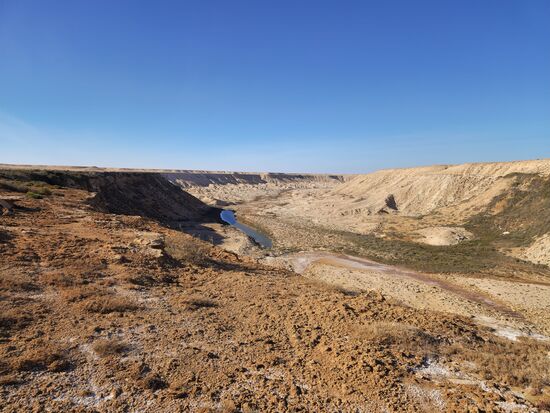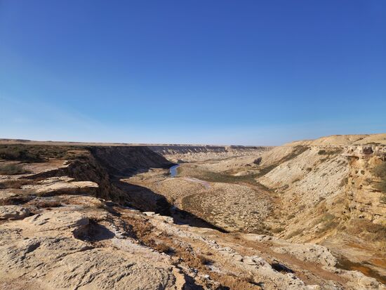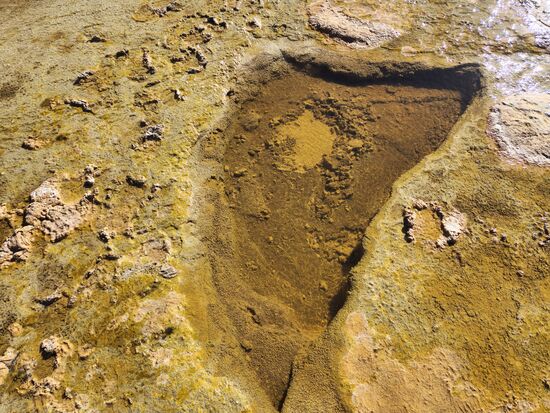 Die Kaskade, über die das salzig-schwefelhaltige Wasser nach unten tröpfelt. In den Canyon hinein kann man nicht gelangen, jedoch kann man entweder einen Ausflug "stromaufwärts" unternehmen oder entlang der beiden Seiten wandern und ein paar Schöne Fotos schießen