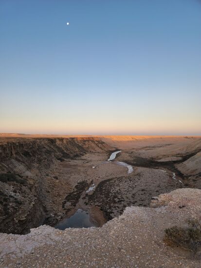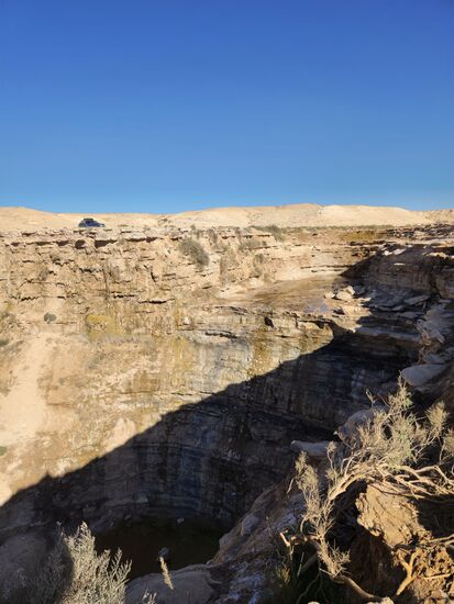 Die "Kaskade" ist eher ein Rinnsaal, das Wasser salz- und schwefelhaltig, weswegen es nur spärliche Vegetation und außer ein paar wilden Eseln keinerlei Tiere dort gibt. Die Gegend ist auch ungeeignet für Nomaden um ihr Vieh zu tränken, deswegen bestehen gute Chancen, den Platz für sich selbst zu haben