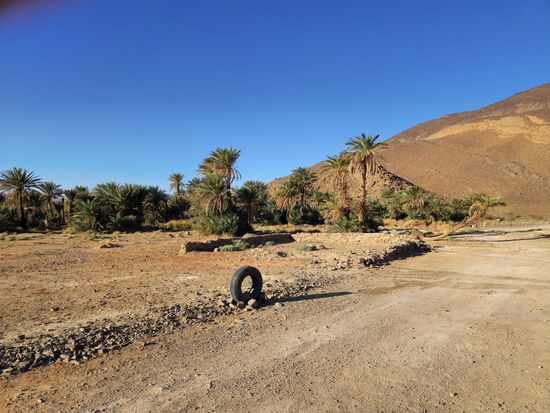Nach dem Ereignis und, weil bereits die Nacht hereinbricht, wollen wir jedoch nicht mehr weiterfahren und entschließen uns, den einzigen Campingplatz nahe Assa anzufahren, das Camping „Camp4you“. Der Abzweig von der Teerstraße befindet sich bei GPS N 28.580737°, W 9.420108°. Trotz Ausschilderung ist der Abzweig bei Dunkelheit leicht zu übersehen. Die kurze Straße zum Campground ist nicht asphaltiert, das letzte Stück wohl etwas steil für große Wohnmobile. Der Besitzer ist sehr nett, es gibt eine (meist Kalte) Dusche sowie Toilette. Der Campingplatz selbst liegt in einem schönen Palmenhain, außer uns war außerdem noch ein nettes Schweizer Pärchen zu Gast.