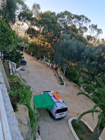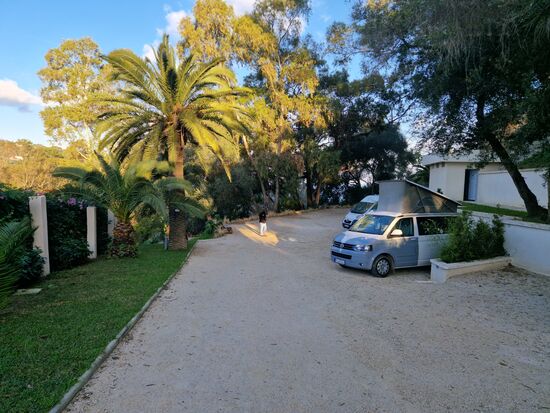 Unsere Fähre kam mit 1,5 Stunden Verspätung in Tanger-Med an, beim Verlassen des Hafens war es bereits Dunkel. Wir haben uns entschlossen, direkt nach Tanger (ca. 40 Autominuten entfernt) hineinzufahren und dort die Nacht auf der einzigen in Tanger vorhandenen Campsite zu verbringen, das Camping Miramonte (Hotel mit Campsite), in dem man auch gut frühstücken kann. Die Einfahrt liegt etwas versteckt (GPS 35°47'25.0"N 5°49'53.2"W) an einer sehr steilen Straße.