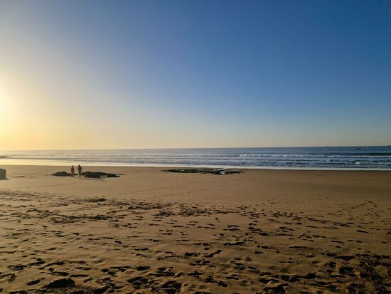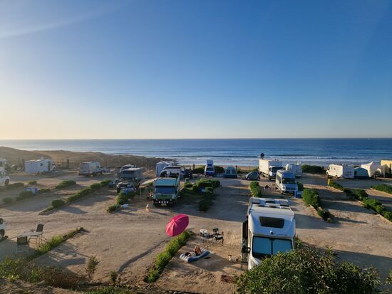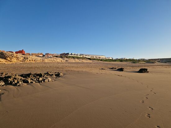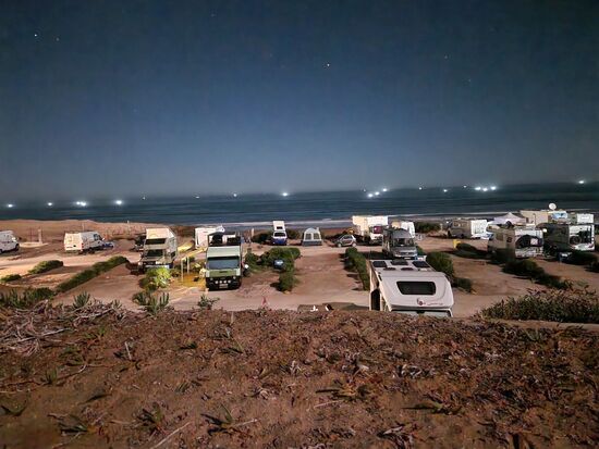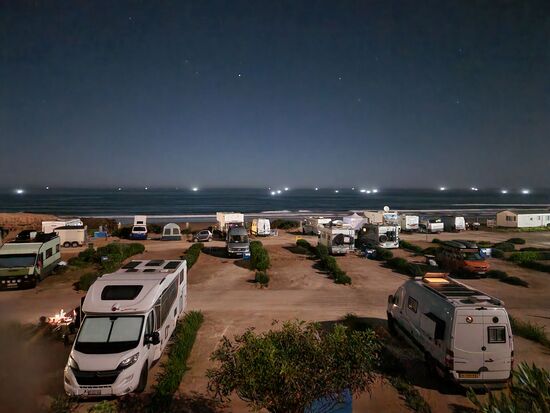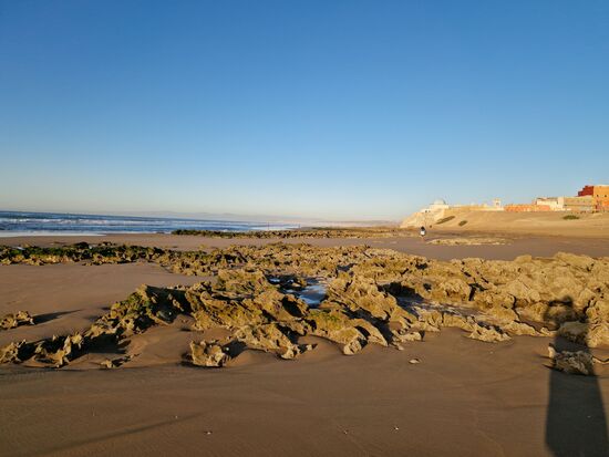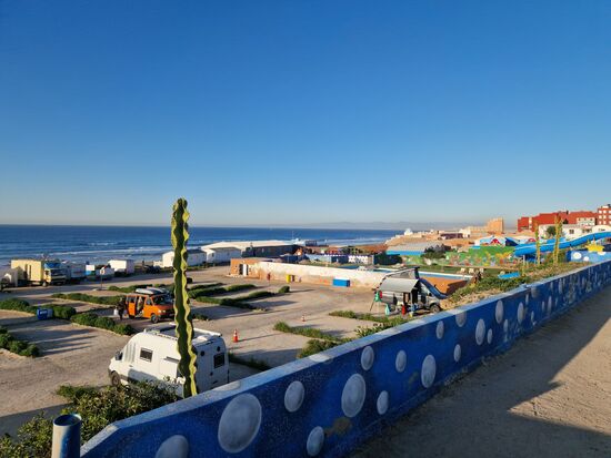 Ab hier sind wir im Prinzip im langsamen Reisetempo die Küste runter gegondelt. Nächste Station war der Campingplatz „Camping Sidi Wassay“ (30.055980976782866, -9.688590656837095), den wir empfehlen. Neben dem Standort des Campingplatzes direkt oberhalb des schönen Strandes, gibt es ein exzellentes Restaurant. Nachts herrscht angenehme Ruhe, was wegen dem Gebell der Straßenhunde vielerorts nicht selbstverständlich ist. Wir haben hier drei Tage (zwei Nächte) campiert, bevor es noch weiter nach Süden ging.