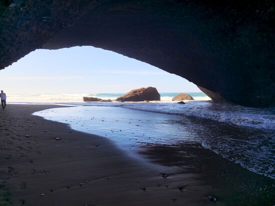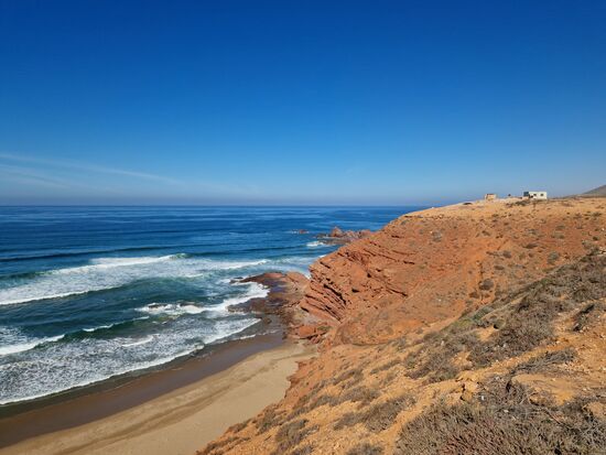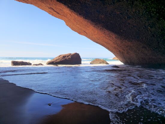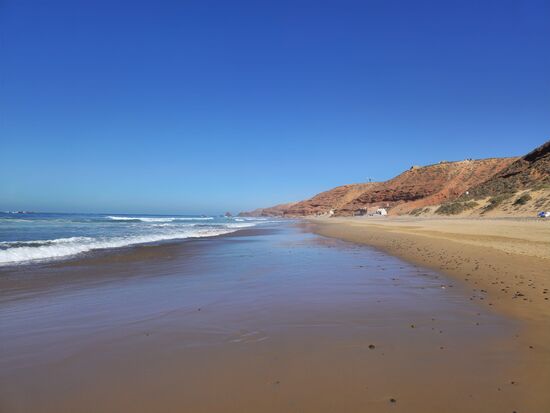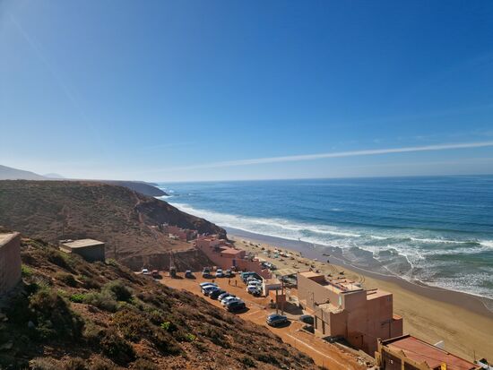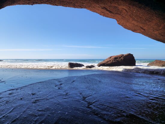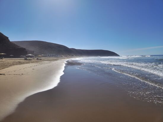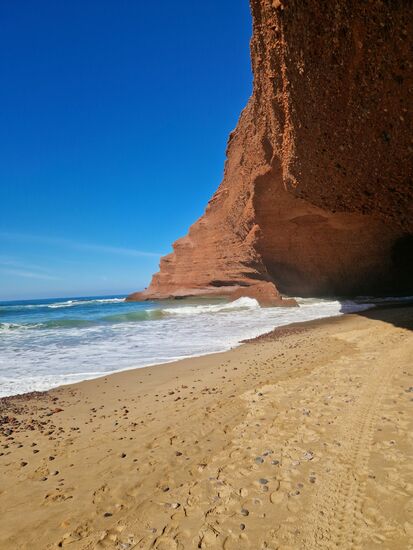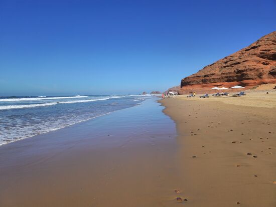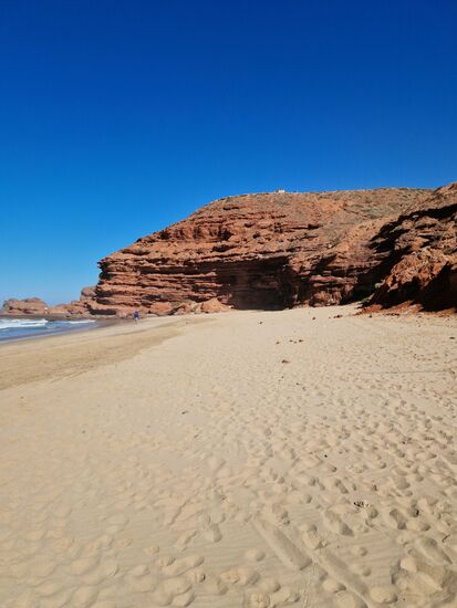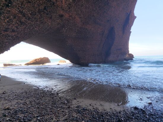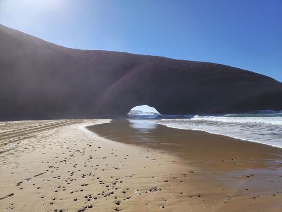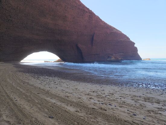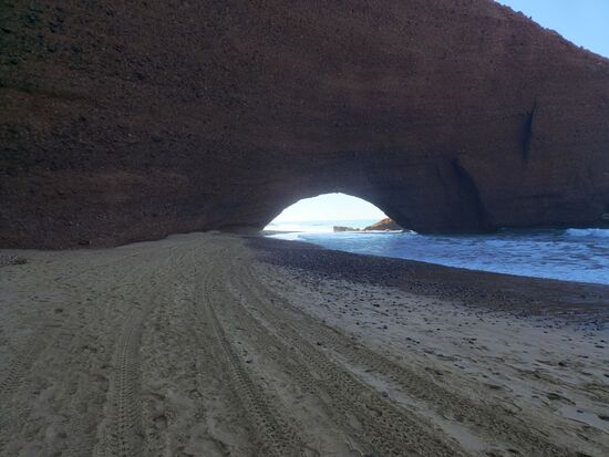 Ebenfalls empfehlenswert für einen Stopp ist der bekannte „Legzira Beach“ mit seinen ehemals zwei Felsbögen (Legzira Arches). Mittlerweile steht nur noch einer. Sehr touristisch, aber trotzdem einen kurzen Stopp und ein paar Fotos Wert (Parkplatz bei GPS 29°26'46.9"N 10°06'51.5"W)