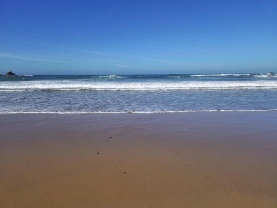 Der Strand vom Parkplatz aus betrachtet. Es sind einige Stufen bis hinunter, unten gibt es anscheinend aber noch einen weiteren Parkplatz. Ein Campingplatz ist auch vorhanden, den wir aber nicht genutzt haben