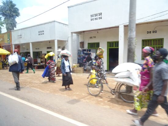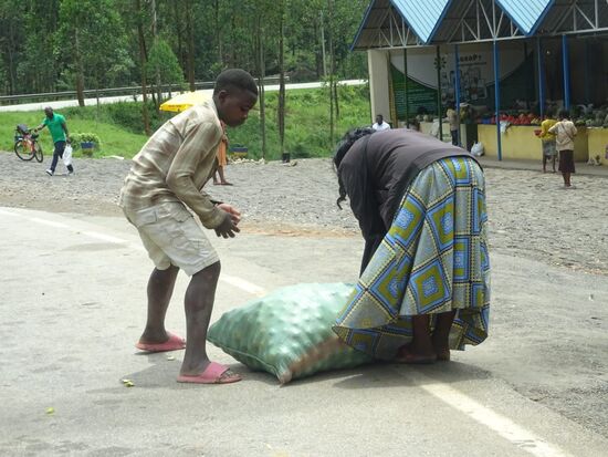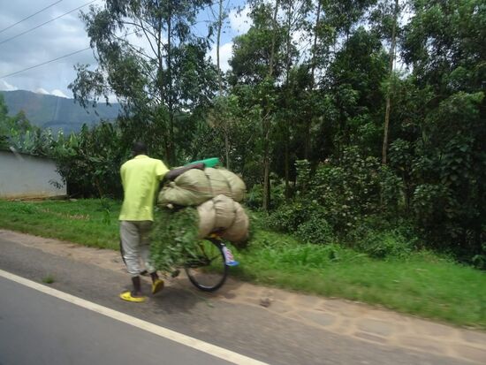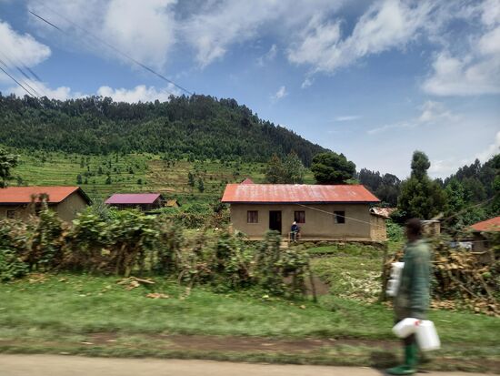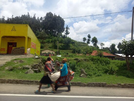 Es geht 160km, ca. 4 Stunden durch die hügelige, grüne Landschaft von Ruanda. Die Höchstgeschwindigkeit ist auf 80km/h begrenzt. Die Straßen sind in einem tadellosen Zustand. Es gibt sogar Fahrbahnbegrenzungen und Straßenbeleuchtung. Die Fahrt ist absolut kurzweilig, denn auf den Straßen gibt es immer etwas zu entdecken und die Landschaft ist einfach nur schön. Wir sind in Kigali auf einer Höhe von 1300m gestartet und haben zwischenzeitlich eine Höhe von 2500m erreicht. Wir haben versucht ein paar Eindrücke im Foto festzuhalten, was aber während der Fahrt eine echte Herausforderung ist.