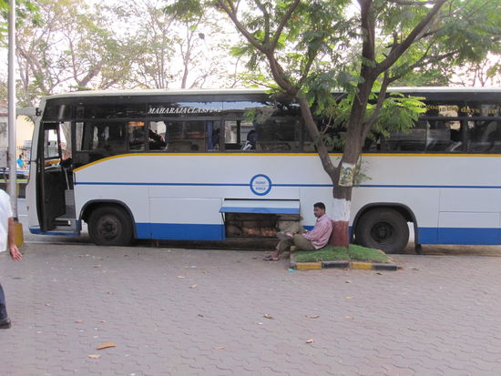 Der Bus war echt geschenkt und es ging ziemlich flott. Und da in Indien viele Dinge die bei uns eine Person erledigt, gleich von mehreren gemacht wird, gab es auch einen extra Kassierer der durch den Bus gelaufen ist und nur dafuer da war.