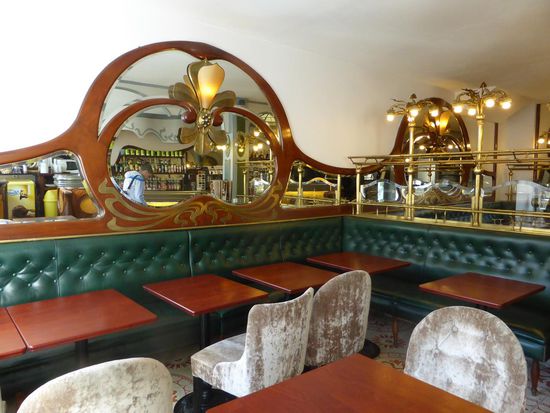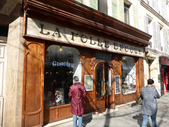 Uns interessiert aber eher das Jugendstil-Café La Folle Epoque auf dem Platz vor der Préfecture. Aber wir sind wieder mal zu früh. Aber immerhin läßt man uns hineinschauen.