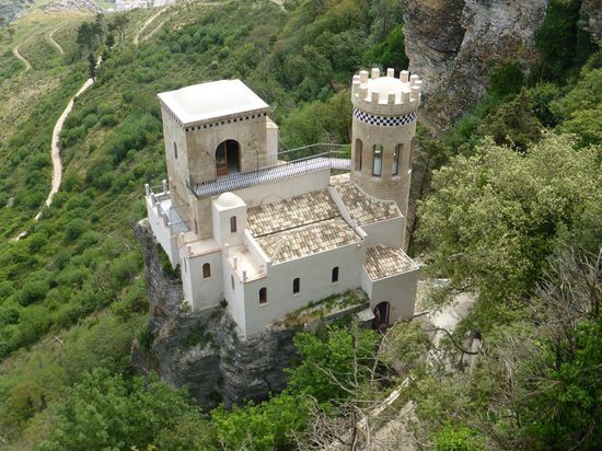 Von der berühmten Elymer-Stadt Eryx ist keine Spur geblieben, doch in der Normannenburg Castello di Venere (12/13.Jh.) sollen 1922 Reste des Tempels ausgegraben worden sein.