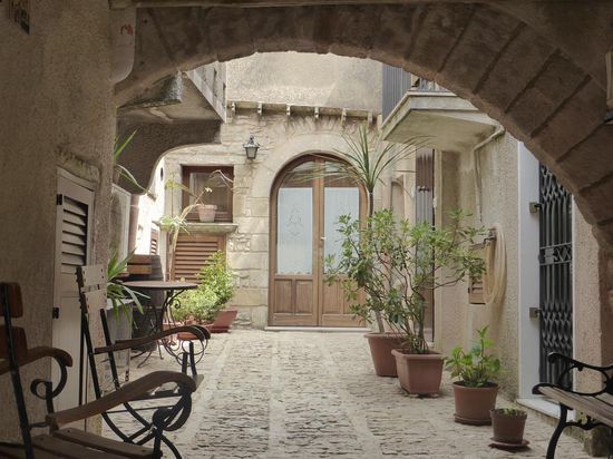 Hübsche Gassen - mit interessantem Kieselsteinpflaster - durchziehen den Ort und führen an Häusern mit blumengeschmückten Innenhöfen vorbei.