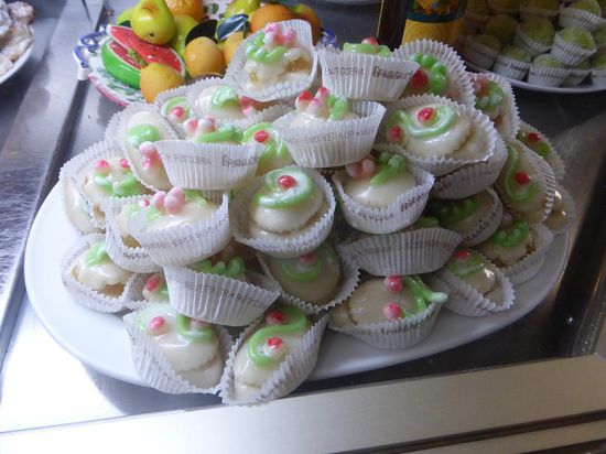 Da Erice berühmt ist für seine 'Pasta delle Mandorle' - einem Marzipangebäck, führt uns Elia (natürlich) in eine der Konditoreien des Ortes, in denen das Gebäck in vielen köstlichen Varianten angeboten wird. Sie vor kurzem wohl in der deutschen Fernsehsendung Wunderschön vorgestellt worden. Die Proben sind überzeugend, aber recht teuer und kalorienhaltig.
