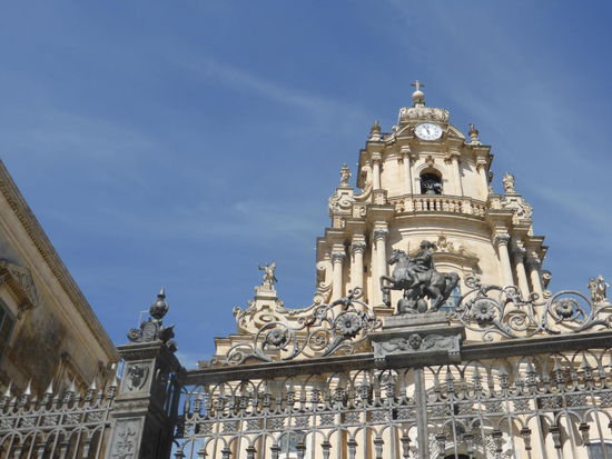 Bereits die Anfahrt zeigt wunderschöne Motive. Die barocke Altstadt ist noch ruhig, nur unsere Busladung bevölkert ihn nun. Wir müssen uns aus Zeitgründen auf Ragusa Ibla beschränken. Hauptsehenswürdigkeit ist der Dom – Basilika San Giorgio. Aber auch die Straßen bis zu ihm hinauf bieten Barock wohin man schaut. Der Ort wird wegen seiner einzigartigen barocken Architektur seit 2002 zum Weltkulturerbe der UNESCO gezählt wird. Wir beginnen unseren Rundgang am Giardino Ibleo. .
