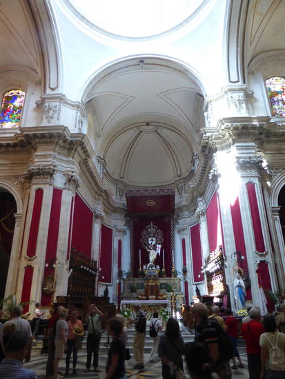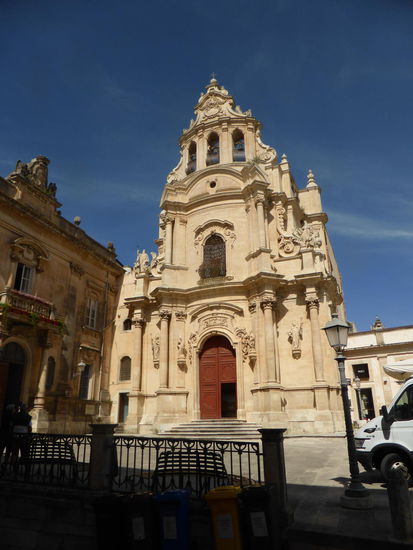 Ersten Stop machen wir an der Chiesa San Guiseppe. Der Kirchenbau wurde auf den Trümmern einer alten Kirche von Rosario Gagliardi (oder seiner Schule) errichtet. Charakteristisch ist die kankav gestaltete Fassade, der wir bereits als Nerkmal des Architekten in Noto begegneten.