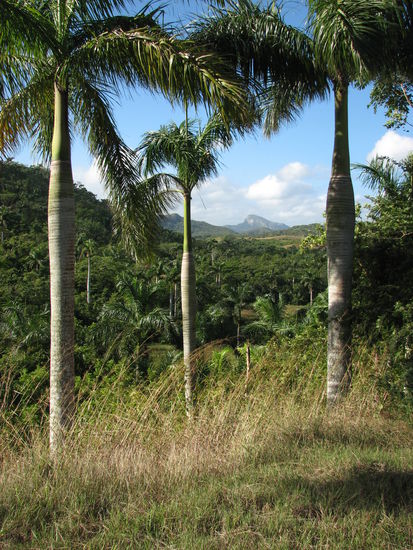 'Mama' - wir haben sie inzwischen so getauft - bereitet uns ein üppiges Frühstück mit Eiern nach Wahl, Saft, Obst, Aufschnitt, kubanischem Honig und Marmelade, besser als in jedem Hotel. Frisch gestärkt gehen wir nun das Viñales-Tal an. Den besten Ausblick hat man vom Los Jazmines-Hotel, das wider Erwarten nach dem Hurrican Ike vor wenigen Monaten keinerlei Schäden mehr aufweist, ein Beweis für die Priorität, die der Tourismus inzwischen auf Kuba erhalten hat. Im Laufe des Tages sehen wir noch hinreichend Schäden an der Fauna. Dagegen ist die Stromversorgung mit neuen Masten und neuesten Isolatoren auf neuesten Stand gebracht.